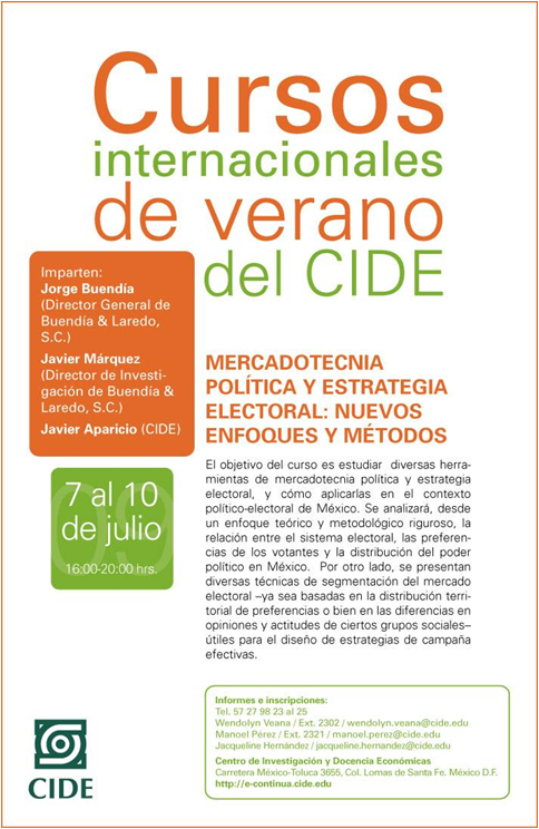 Este verano 2009 impartiré un breve curso de verano sobre marketing político junto con Jorge Buendía y Javier Márquez (de Buendía y Laredo, A. C.)