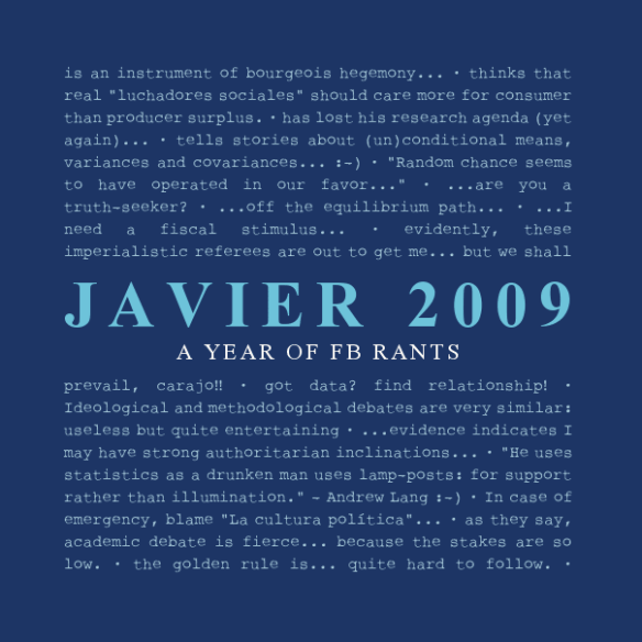 This image includes a non random selection of my facebook status comments during 2009 (you can find the FB app under “my year in status”). Egocentric, yes but a bit therapeutic, too.