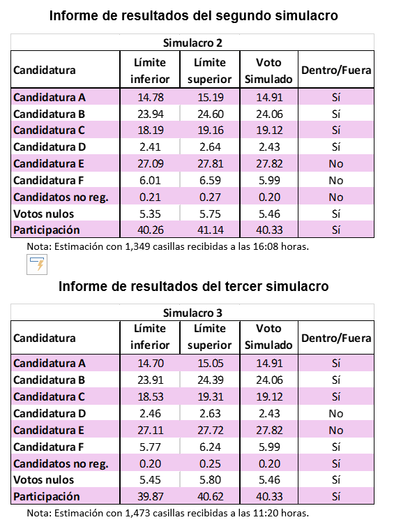 En el libro referido, el exconsejero electoral Gabriel Corona, señala algunos problemas observados en los tres simulacros realizados previamente al conteo rápido oficial. Estos problemas, consistentes en diferencias entre los datos ficticios distribuidos al personal de campo, los datos dictados mediante llamadas de voz y los datos recopilados en centro de captura, fueron documentados en los informes respectivos entregados por el Comité Técnico al IEEM donde se comentaron diversas fuentes posibles de error. Cabe aclarar que el propósito de los simulacros es, justamente, detectar fuentes de error y corregirlas a tiempo para no comprometer el ejercicio estadístico definitivo. Es claro que, de no corregirse estos problemas, las estimaciones definitivas podrían sobreestimar o subestimar a alguno de los contendientes.